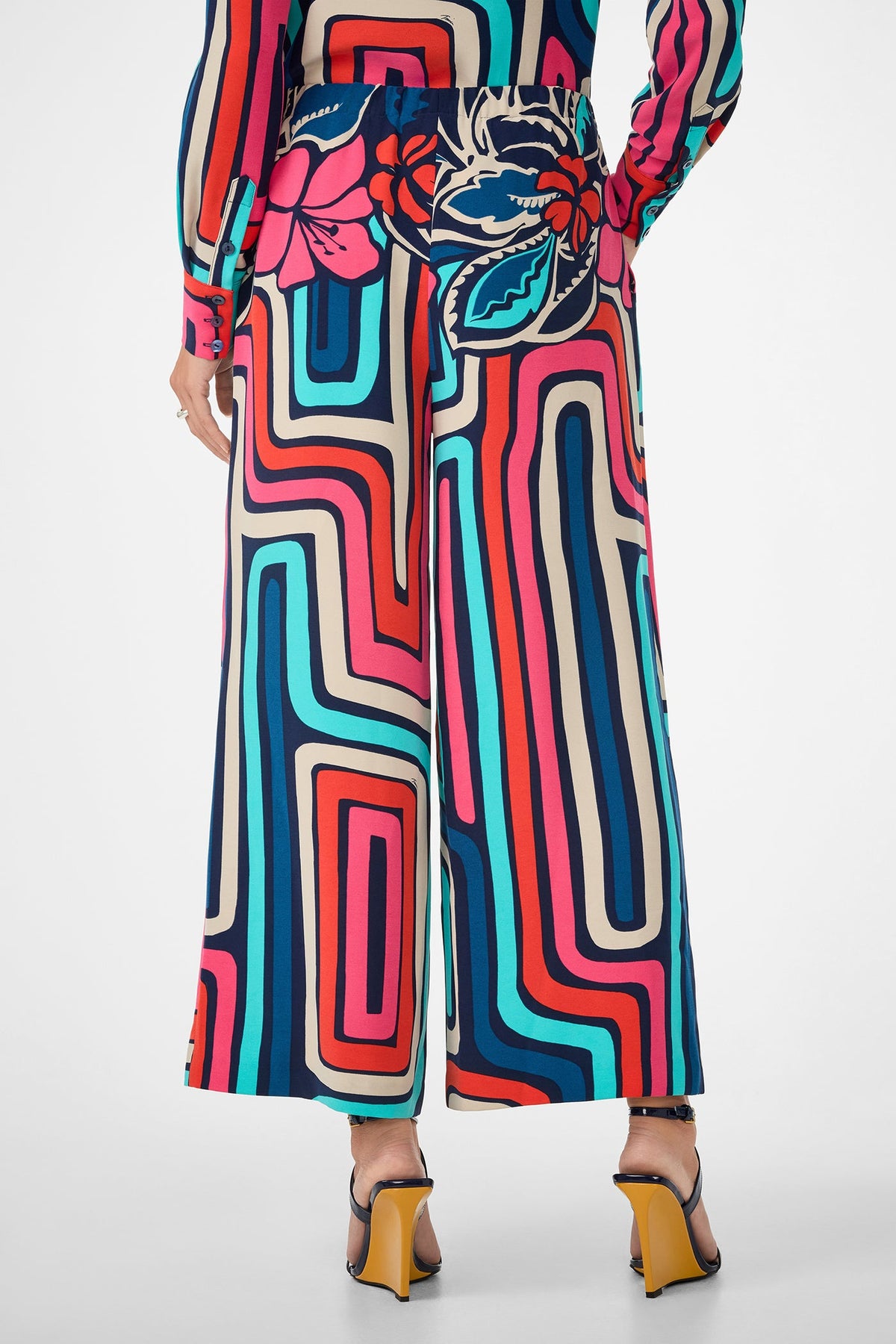 Embrace an artistic escape with these sophisticated Cubism Pants, where geometric abstraction meets everyday comfort. Crafted from lightweight double georgette, the fabric drapes beautifully while maintaining its structured elegance. The bold cubist print delivers visual intrigue without compromising wearability, while the discreet elastic waistband ensures effortless movement throughout your day. Perfect for those who appreciate refined style with an avant-garde edge.